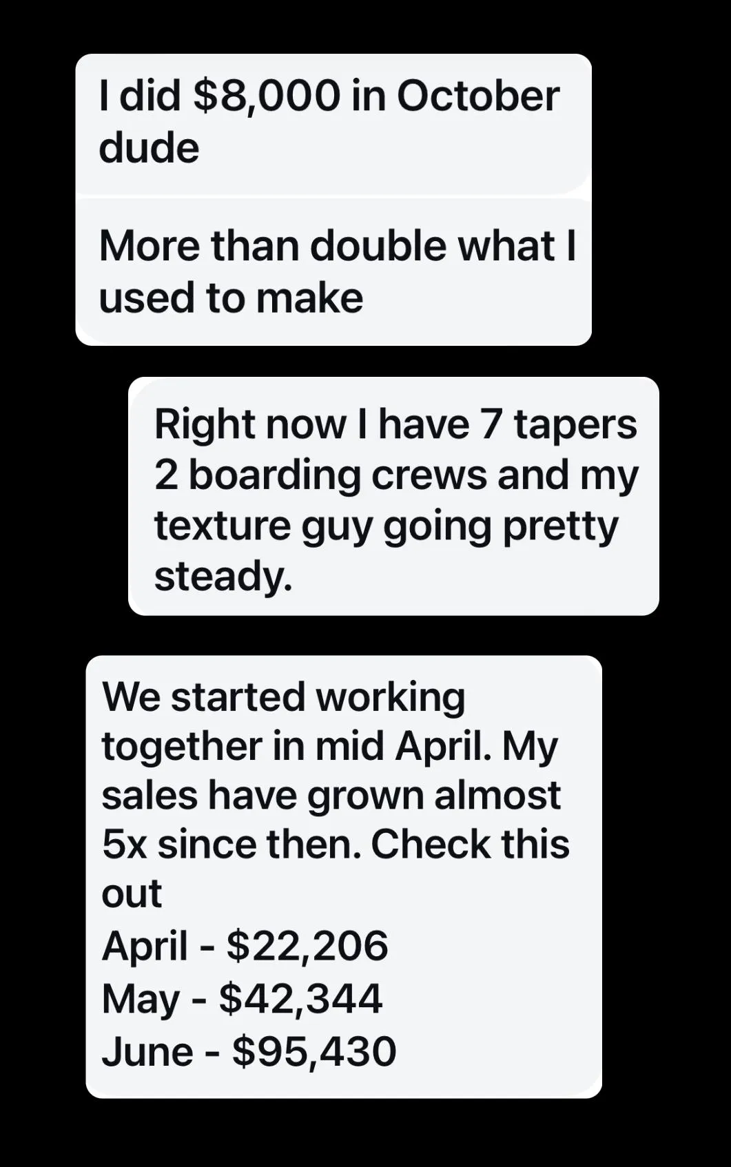 Surround yourself with other drywall contractors who have been in our shoes and speak your language. Let's build a solid foundation for your business so you can start living the life you dreamed of. We all want to work less and earn more. That's possible with